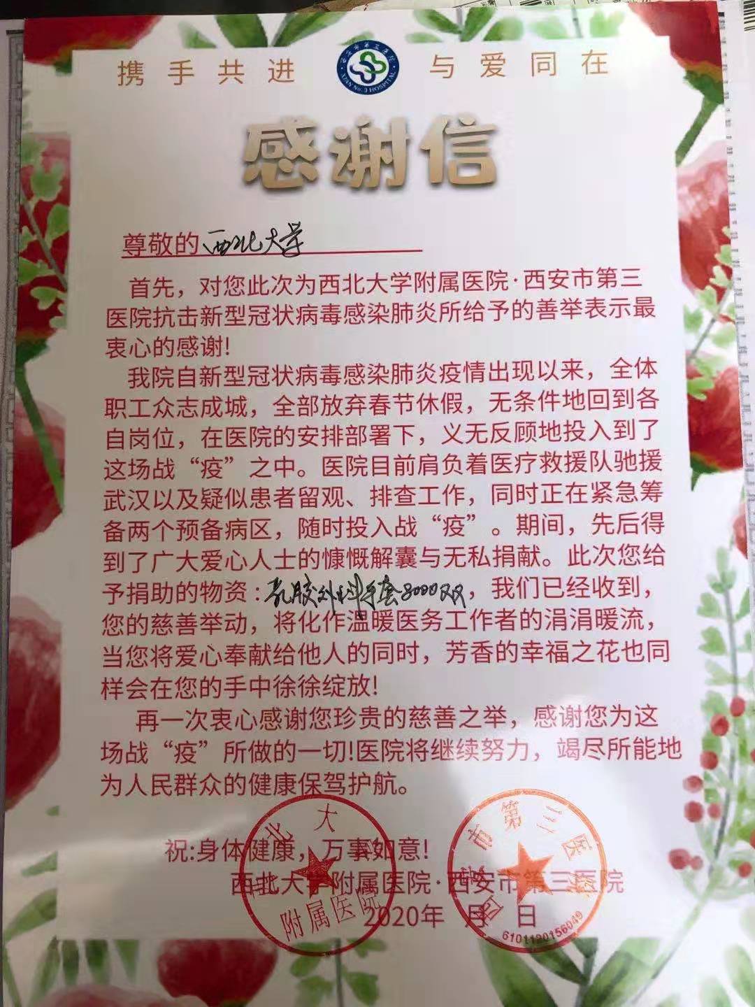 急难关头显党性,关键时刻有担当。战“疫”打响后,pp电子游戏官网副院长陈凯同志,秉承西大医学人“医人报国、精诚济世”的使命责任,带头参加到疫情防控工作当中,发挥共产党员的先锋模范作用。疫情暴发以来,他积极与学校附属医院沟通联系、了解所急所需,在得知一线医护物资紧张的情况后,及时向学校汇报,协调专款支援疫情防控一线。在疫情防控的关键时期,他与国内处、财务处等同志积极调动各方资源,及时跟进货源渠道情况,在“上海正和岛爱心企业家”校友联盟、澳洲校友总会、罗马尼亚陕西商会、陕西省归国华侨联合会等组织的协助支援下,累计采购捐赠口罩20845个,医用防护手套8000双,防护面罩600个、类人胶原蛋白修复敷料176盒,在一定程度上缓解了疫情一线防控物资紧缺之急。他的默默付出,彰显出了共产党员的初心与使命。