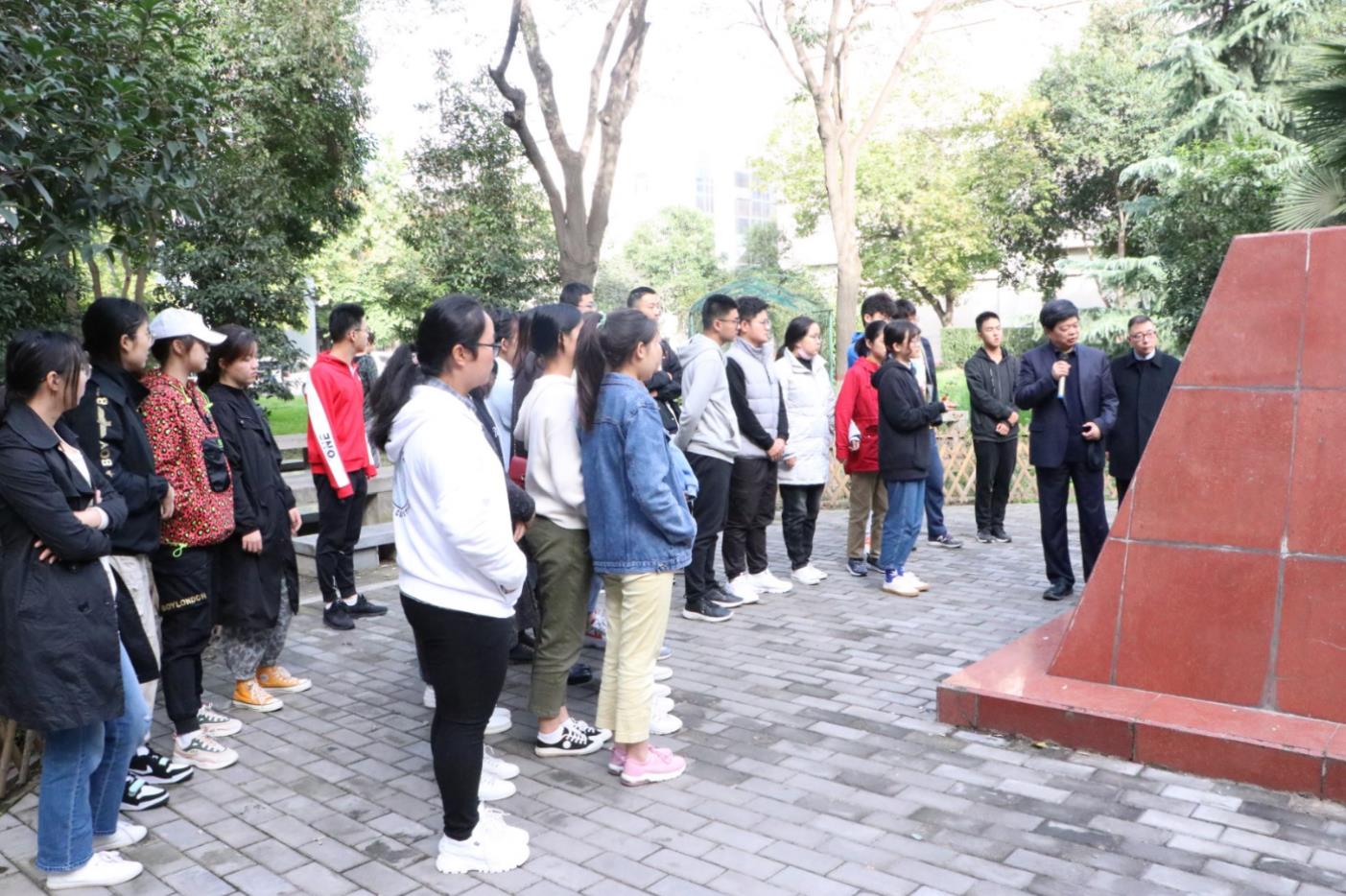 在侯外庐、张伯声、杨钟健、岳劼恒、鲁迅等名师人物雕塑前,姚远教授向同学们逐一讲述了他们和西大的渊源以及各自的学术成就。