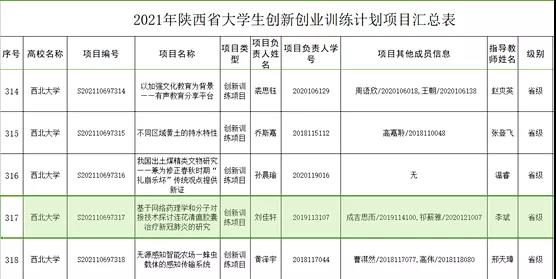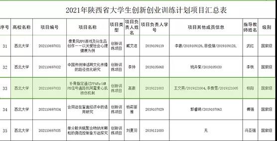 根据陕西省教育厅《关于公布2021年大学生创新创业训练计划项目名单的通知》(陕教高办﹝2021﹞21号),pp电子游戏官网共4个项目获批立项。其中,国家级项目2项,省级项目2项。