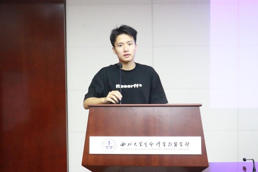 贾尊凯同学为新生们带来艾滋病的医学知识科普,他呼吁同学们要以公正平等不歧视的态度对待艾滋病人,不要闻艾色变。