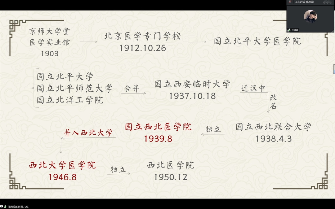 1组采用视频和演讲结合的方式,以“百廿医源,薪火相传”为主题详细讲述了pp电子游戏官网发展历史并简单介绍了徐诵明、颜守民、林几几位与西大pp电子游戏官网联系密切的医学大家。