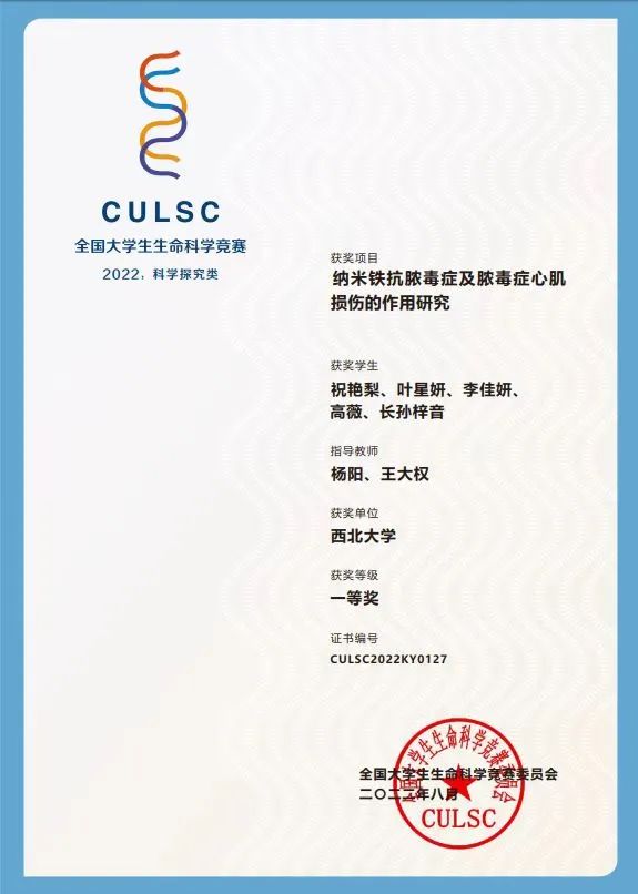 2022年8月,全国大学生生命科学竞赛(2022,科学探究类)决赛圆满结束。本次大赛由全国大学生生命科学竞赛委员会主办,安徽农业大学承办,东北师范大学、中山大学和西华大学协办。由生命科学与医学部杨阳教授指导的pp电子游戏官网本科生历经校内初赛、陕西省赛层层选拔,在528所高校的8614个团队中脱颖而出,最终站上全国决赛的舞台,并荣获国家级决赛一等奖,实现pp电子游戏官网在此赛事中首次得金的开门红。