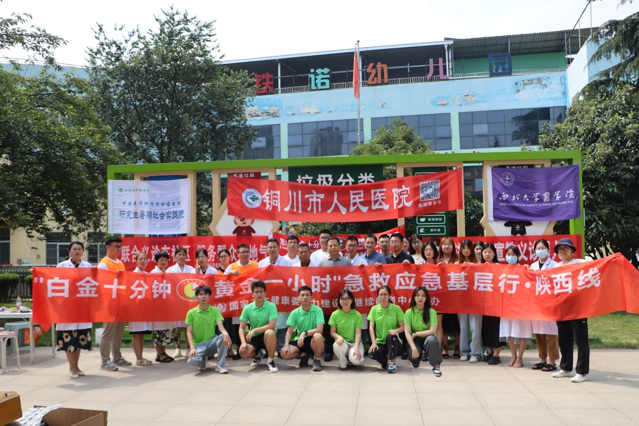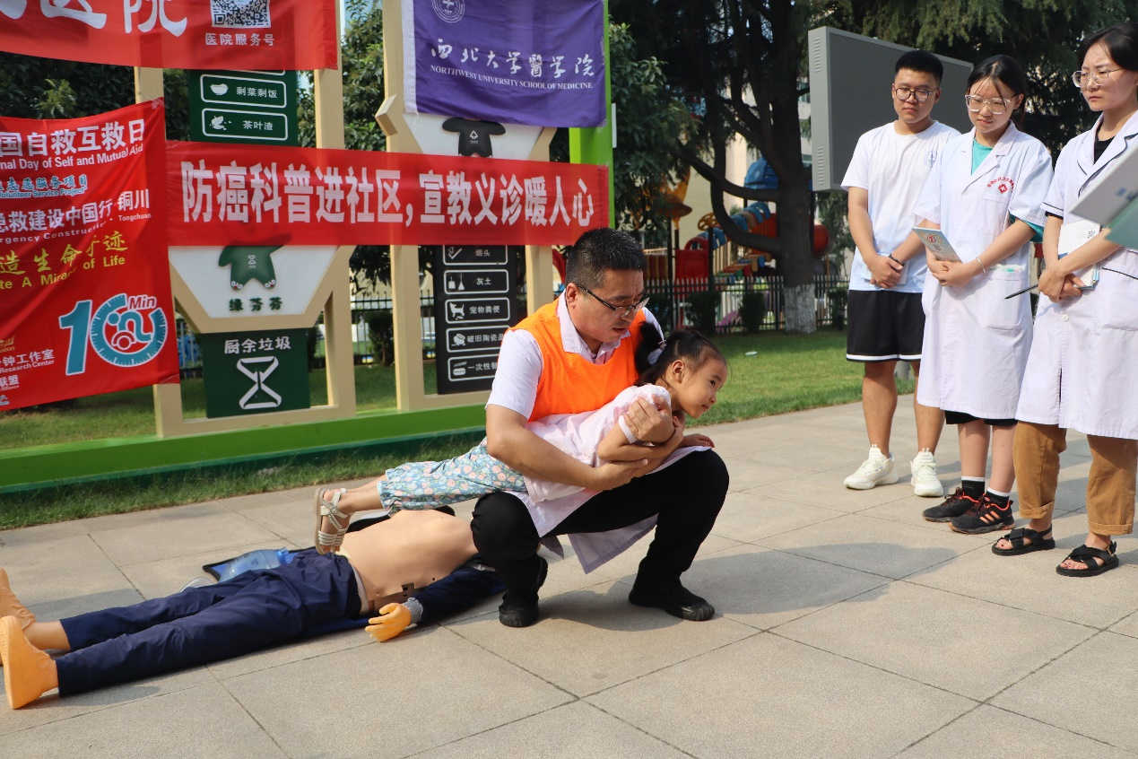团队成员积极协助铜川市人民医院的“白金十分钟”急救知识宣传小组,向社区诊所的医生和社区居民开展急救知识实践教学,演示心肺复苏和海姆立克急救法的正确操作,并强调对于不同年龄的人群,应采取的不同急救策略。