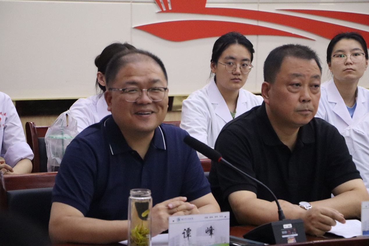 7月20日下午,实践团队赴铜川市人民医院开展座谈交流。铜川市人民医院副院长谭峰、肿瘤科主任郭小军及医护人员、实习学生共同参加。