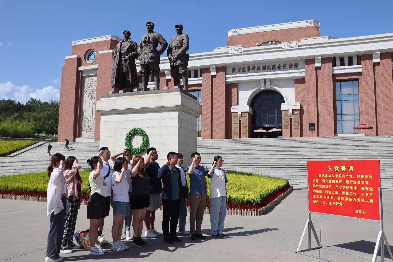 下午,实践队前往陕甘边革命根据地照金纪念馆,队员们在讲解员的带领下,和游客们一起聆听了发生在这片热土上的革命历史。活动最后全体党员集体背诵入党誓词,庄严肃穆的场景仿佛重回当初加入党组织的那一刻,更加坚定了党员干部的理想信念和党性认识。