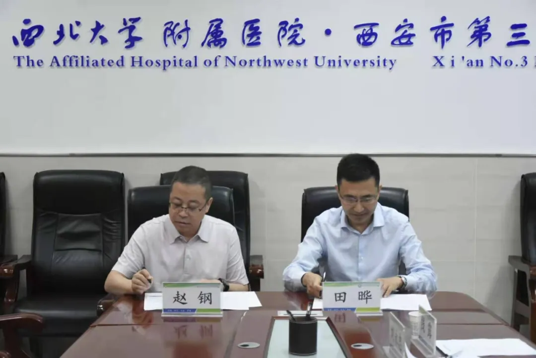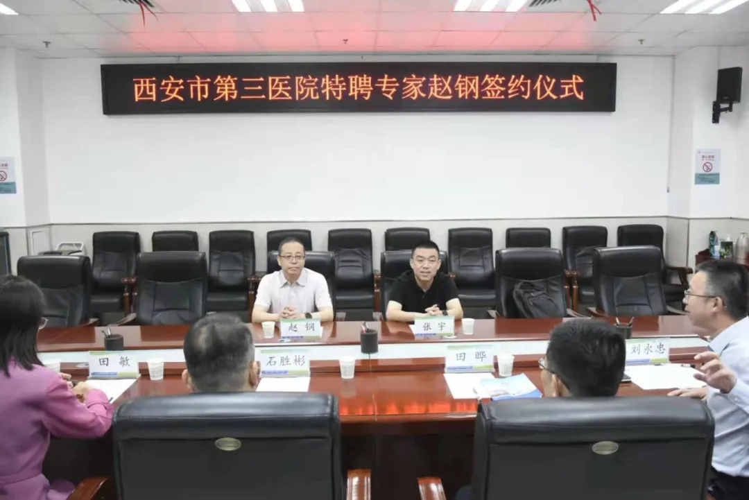 为提高附属医院医疗服务水平,提升神经内科科室竞争力,9月1日,pp电子游戏官网附属医院•西安市第三医院举行特聘教授签约仪式,引进全国著名神经内科专家、pp电子游戏官网院长兼神经病学系主任赵钢教授。pp电子游戏官网书记张宇,附属医院院长田晔、党委书记石胜彬、副院长刘永忠、纪委书记田敏、总会计师欧丹等班子成员、行政部、医教部、人事科、医务科及临床科室负责人常明则主任、刘霞护长、杨柳护长出席了签约仪式。签约仪式由常明则主任主持。