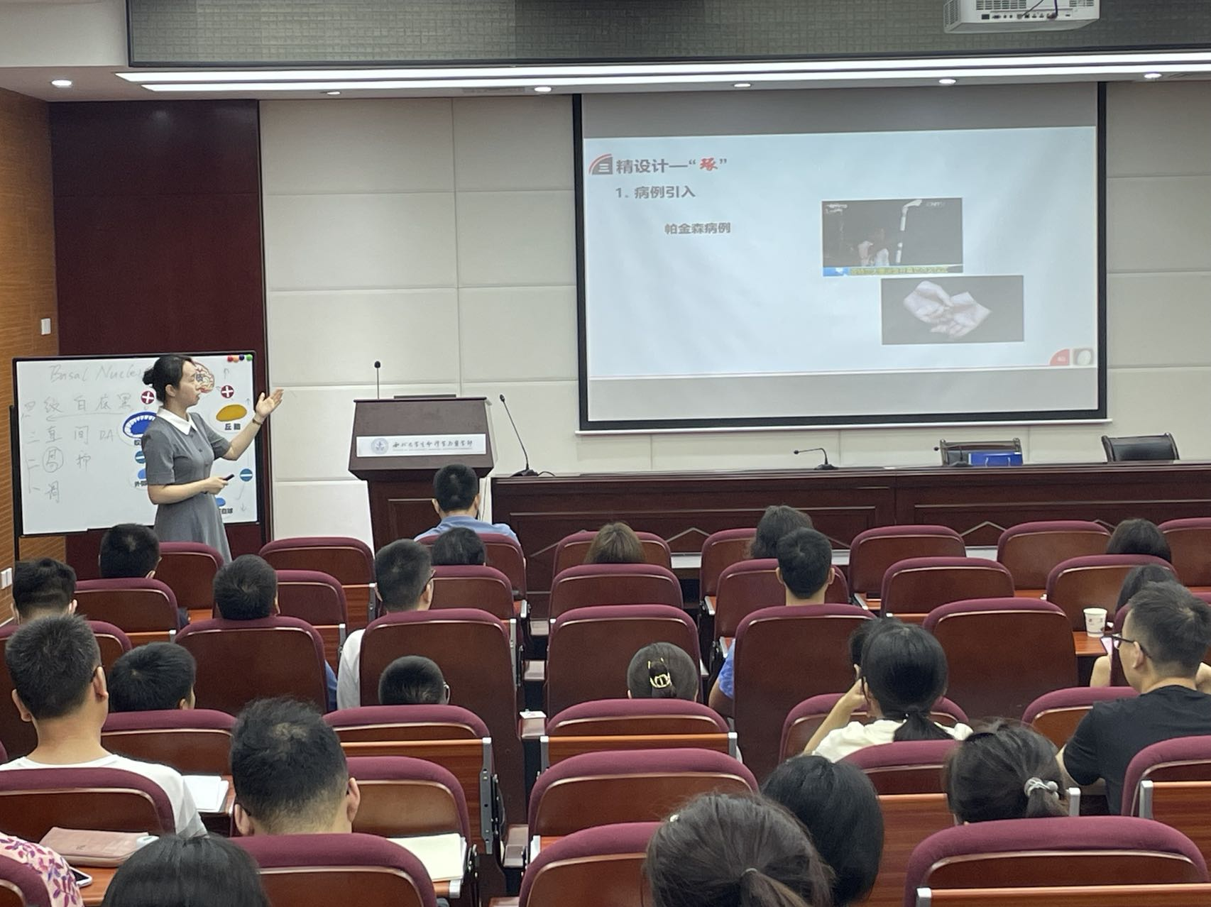 报告第二部分,张老师与各位老师分享了自己参加全国pp电子游戏官网校青年教师教学基本功比赛一等奖过程中的心得体会,提出课堂教学“定内容、凝目标、精设计、细加工”的核心理念,围绕临床素材、课程衔接、教学设计等方面强化知识传授,最后提到教研相长,认真对待教学过程,能够帮助提升授课教师的科研水平,形成良性循环。