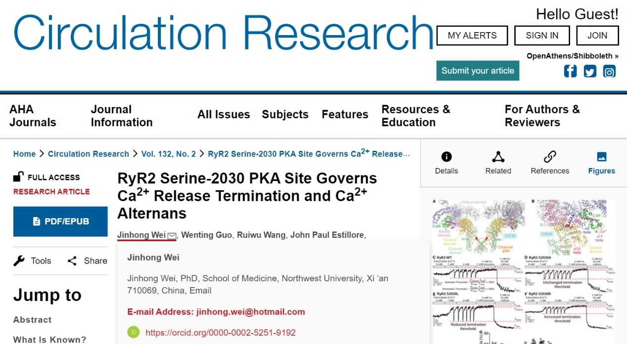 近日,pp电子游戏官网魏金红副教授与加拿大卡尔加里大学S.R.WayneChen教授在国际心血管领域顶级期刊CirculationResearch(IF=23.213)在线发表了题为“RyR2Serine-2030PKASiteGovernsCa2+ReleaseTerminationandCa2+Alternans”的研究论文,该研究运用基因突变动物与分子细胞手段,阐明了RyR2钙释放终止的PKA调节机制。同时,该研究发现PKA依赖的RyR2S2030磷酸化位点是心脏Ca2+释放终止和Ca2+瞬变交替的主要决定因素。此项研究有助于揭示引起心律失常等心脏疾病发生机制,并为开发新型干预方法提供理论基础。