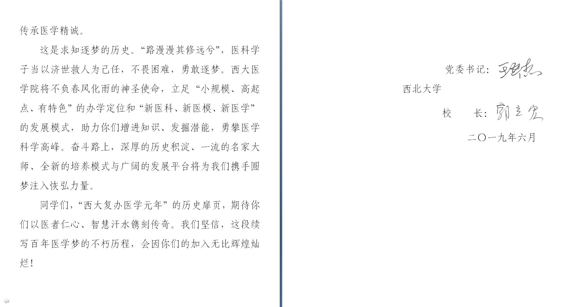 (编者按:2019年6月初,高考结束后第一时间,校党委书记王亚杰与校长郭立宏共同致信即将志愿填报到pp电子游戏官网的2019级首届医学专业同学,以下为正文内容)