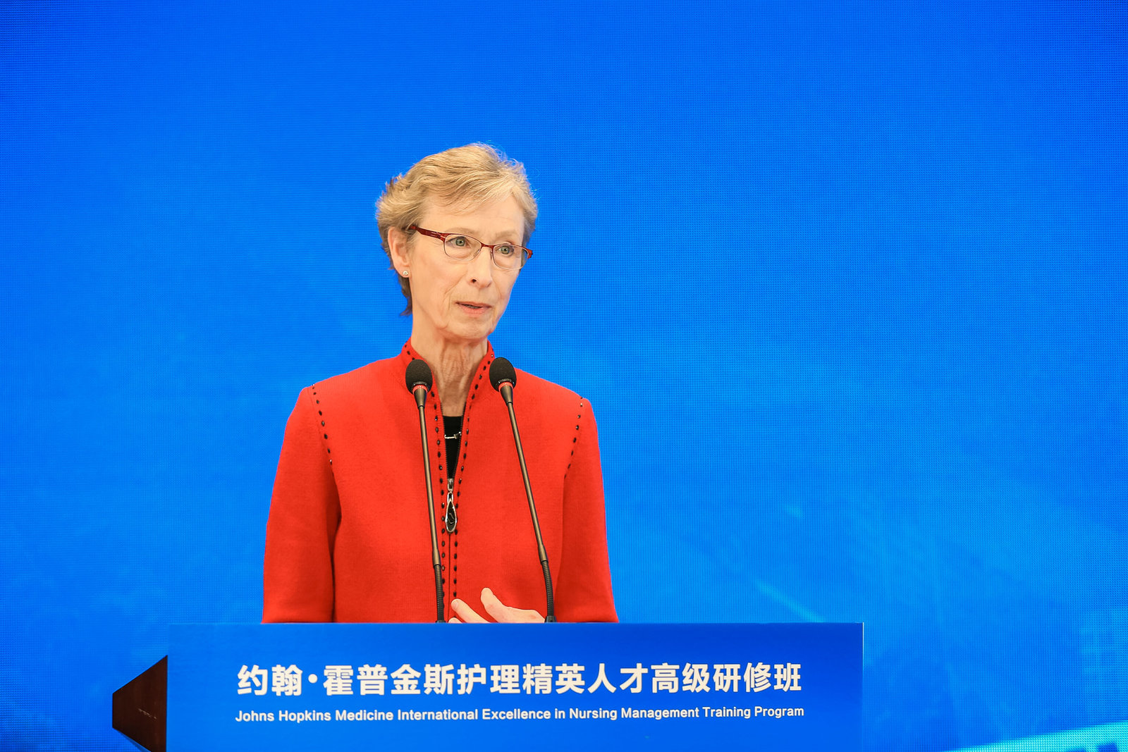 2019114日,由pp电子游戏官网、陕西省护理学会、中国西北国际医疗集团共同主办,美国约翰·霍普金斯医疗集团支持,中国西北国际医疗中心承办的首届“约翰·霍普金斯护理精英人才高级研修班”在我校太白校区举行。空军军医大学原副校长苏景宽,美国约翰·霍普金斯医疗集团国际部护理与临床事务副总裁凯伦·哈勒,pp电子游戏官网党委常委、副校长,生命科学与医学部主任常江,陕西省工商联副主席、中国西北国际医疗集团总裁周建玲,空军军医大学西京医院原副院长吴世锋,中华护理学会常务理事、陕西省护理学会理事长李武平,陕西省卫生健康委员会原副主任黄立勋以及省市卫健委有关部门负责人,国内处、pp电子游戏官网、附属第一医院等校内相关单位负责人出席开班式,来自全省200多家医疗机构近300名护士长参加培训。开班仪式由校长医学助理、生命科学与医学部执行主任陈富林主持。