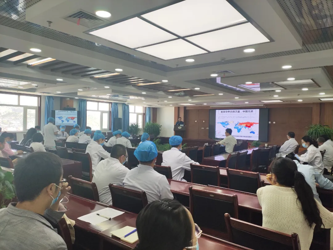 揭牌仪式结束后,郭立宏一行参观考察了神木市医院。赵钢教授为医院的医护工作者作了题为“脑小血管病”的学术报告。