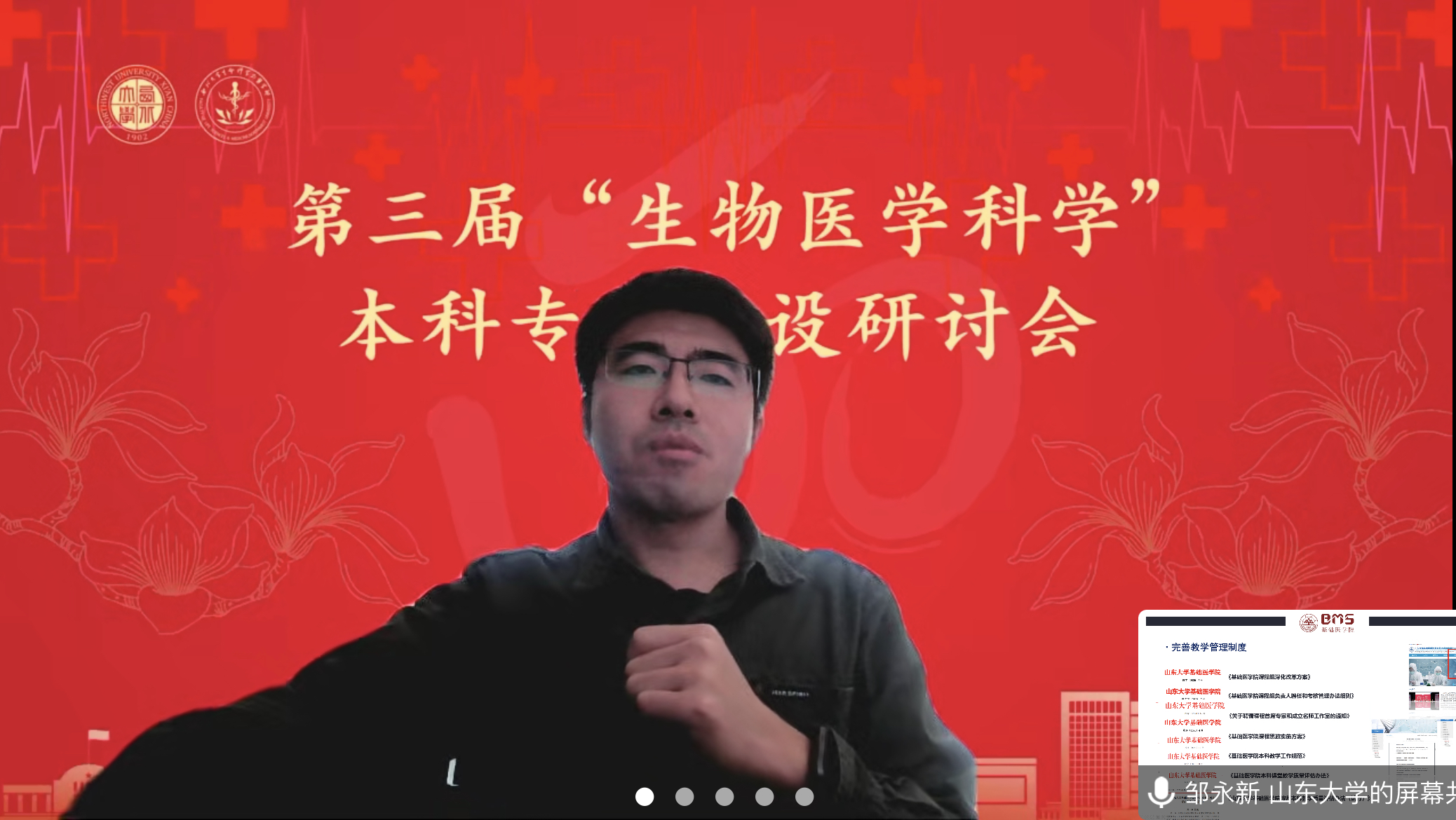 2022年12月11日,由全国生物医学科学专业虚拟教研室主办、pp电子游戏官网承办的第三届“生物医学科学”本科专业建设研讨会成功举办。由于受疫情的影响,本次研讨会采用线上会议、全程直播的方式举行。来自上海交通大学、汕头大学、南方科技大学、山东大学、吉林大学、蚌埠pp电子游戏官网、pp电子游戏官网等学校的专家,围绕大会议题进行了深入的交流和探讨。开幕式由pp电子游戏官网李方民副院长主持,赵钢院长致欢迎辞。汇报和交流环节由王昊教授、李恩民教授、高明清教授联合主持。