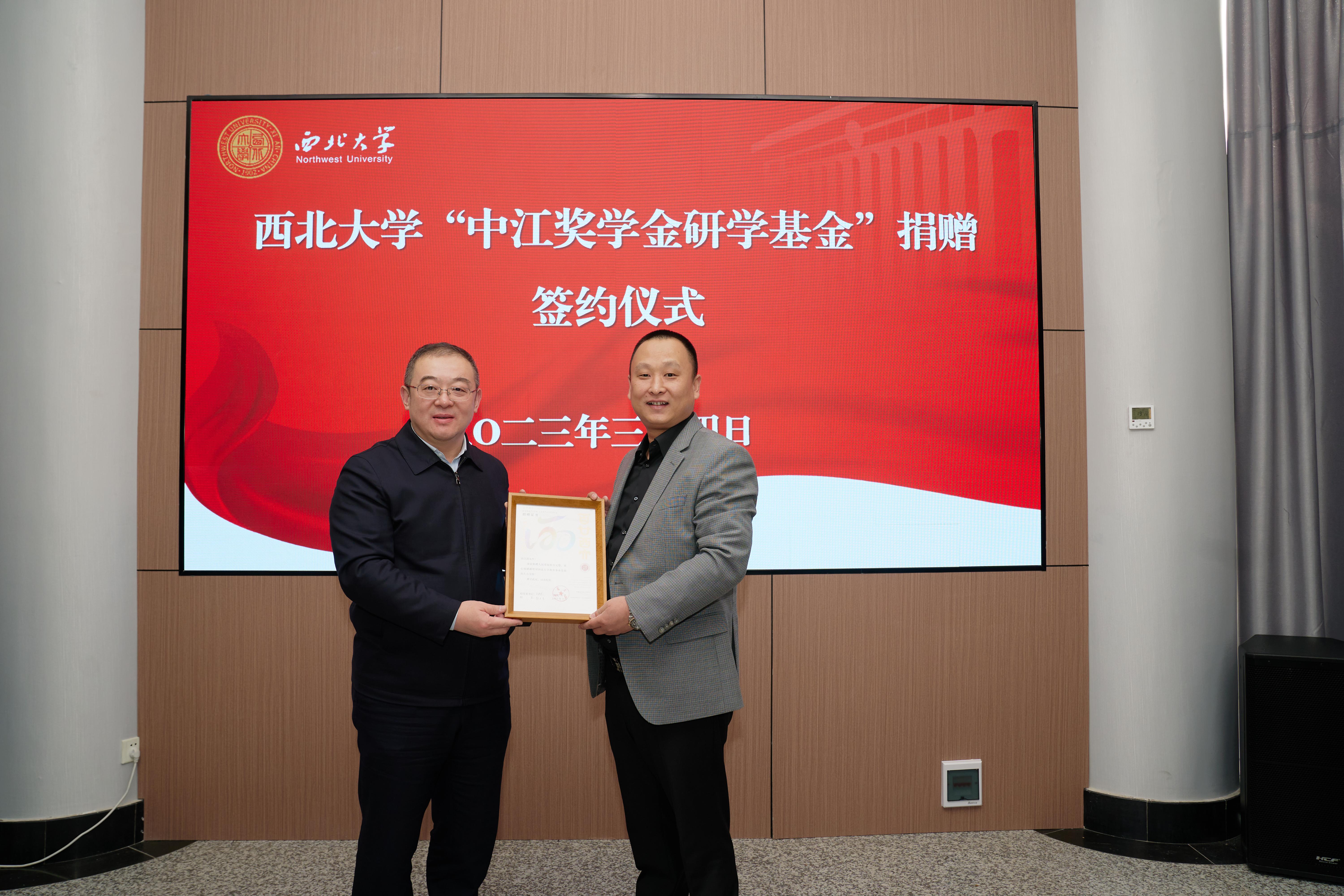 2023年3月4日上午,pp电子游戏官网“中江奖学金研学基金”签约捐赠仪式在太白校区举行。校党委常委、副校长常江,北京爱心企业家冉江涛、梁翠丹,校友郝重庆出席仪式,国内合作与校友工作处、学生工作部、研究生院、生命科学与医学部、碳中和学院负责人参加。