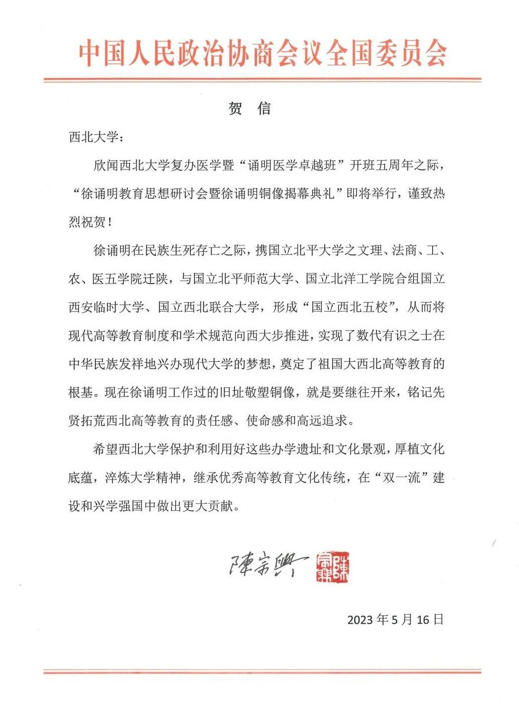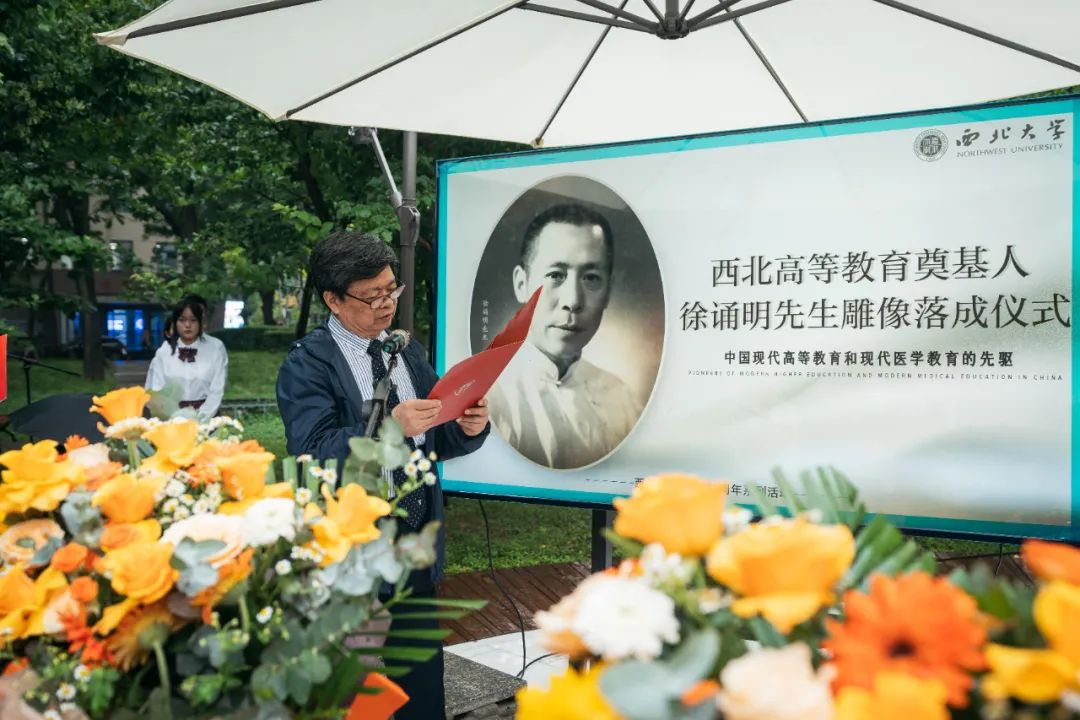 西北高等教育奠基人、中国现代医学先驱徐诵明雕像在pp电子游戏官网落成