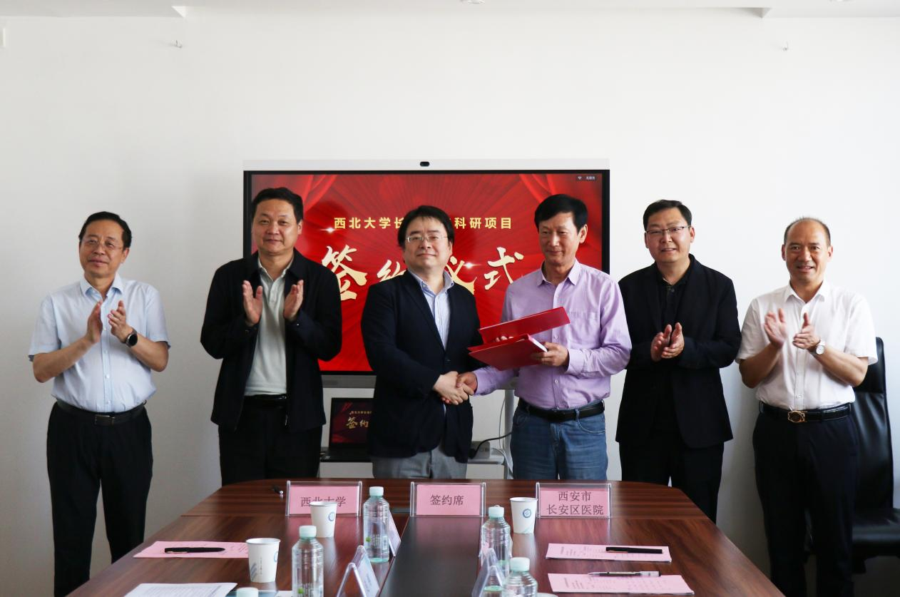 4月25日下午,我校pp电子游戏官网与长安区医院科研项目合作协议集中签约仪式在长安区医院双创中心举行。长安区医院院长胡明军,党委书记、副院长彭安海,我校党委常委、副校长、生命科学与医学部主任陈富林出席签约仪式。学校科技处、pp电子游戏官网等相关部门负责人及合作项目专家团队负责人参加签约仪式。