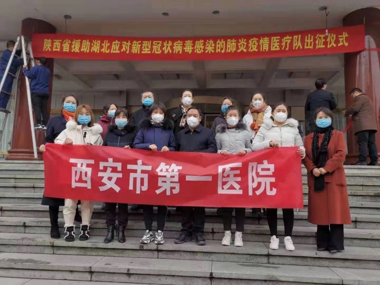 1月26日,pp电子游戏官网附属第一医院(西安市第一医院)、pp电子游戏官网附属医院(西安市第三医院)的9名白衣战士,作为陕西首批援鄂医疗队成员出征武汉。