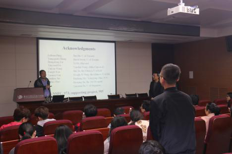 聘任仪式结束后,关锋教授主持pp电子游戏官网创新论坛第九百九十四讲暨校庆118周年学术讲座,由常智杰教授为与会师生作题为“肿瘤发生中的基因转录作用”的学术报告,主要介绍人类肿瘤相关的一个新基因:CREPT,并提出了这一基因在促进肿瘤生长相关基因转录方面作用的一个新机制,这将为肿瘤的基因诊断和针对性基因治疗提供了参考。随后与师生探讨了研究技术相关问题,引起与会师生的热烈反响。