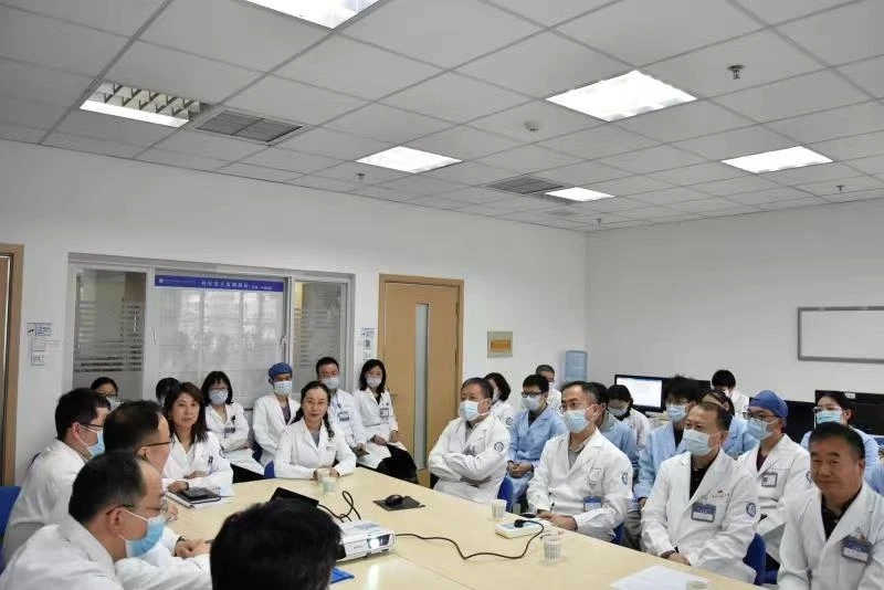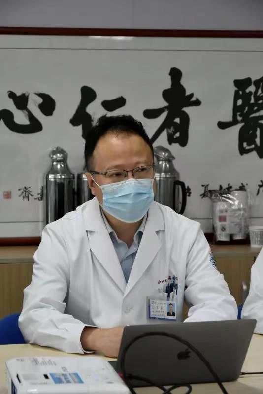 结束病房查房回到医生办公室,主持医师从病史采集、体格检查、辅助检查、诊断与鉴别诊断,一一作了提问和讲解,并强调治疗前后病情告知的重要性,主持医师在讨论中还结合双语教学和进展性内容,开阔了学生眼界。