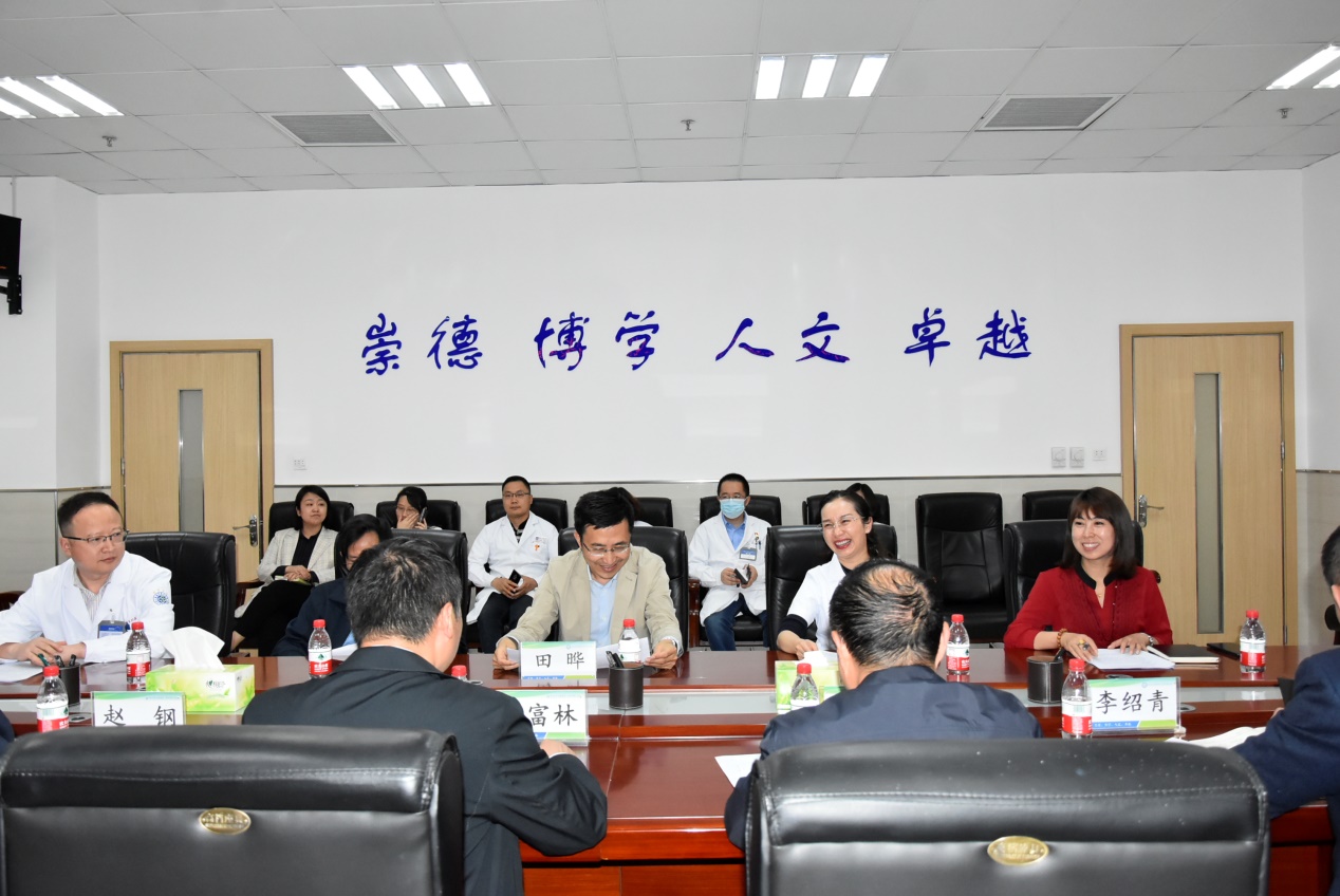 5月7日下午,pp电子游戏官网党委常委、副校长、生命科学与医学部执行主任陈富林、pp电子游戏官网院长赵钢、副院长李方民一行赴pp电子游戏官网附属医院召开临床教学体系建设座谈会,附属医院院长田晔、副院长钱露、相关科室负责人出席座谈会。