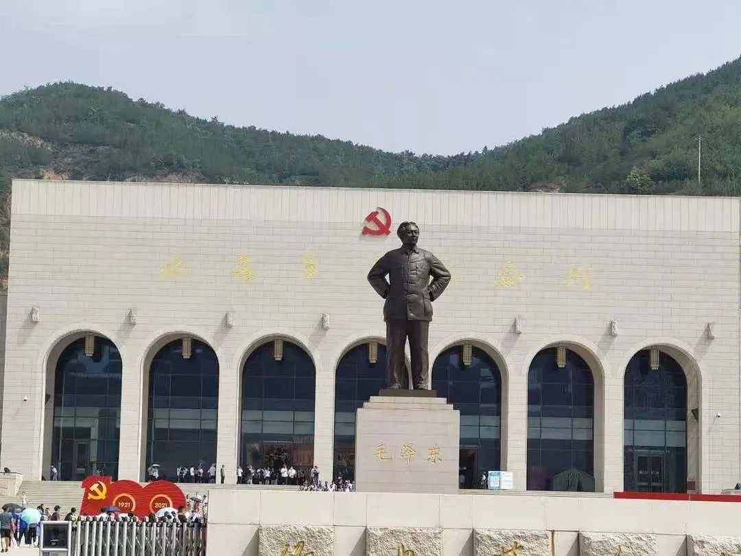 进入纪念馆,正对大门的是毛泽东、周恩来等领导人和来自五湖四海的军人、工人、农民以及国际友人汇聚在一起的雕像,体现了党始终与群众密切联系在一起。雕像人物身上破旧又厚重的衣物,脸上被风雨打磨的痕迹,瞬间将同学们带回到那个风雨飘摇的年代,先辈们眼中燃烧着革命必胜的火焰,脚下迈出坚定的步伐,用勇往直前的坚定信念深深感染着每一位队员。