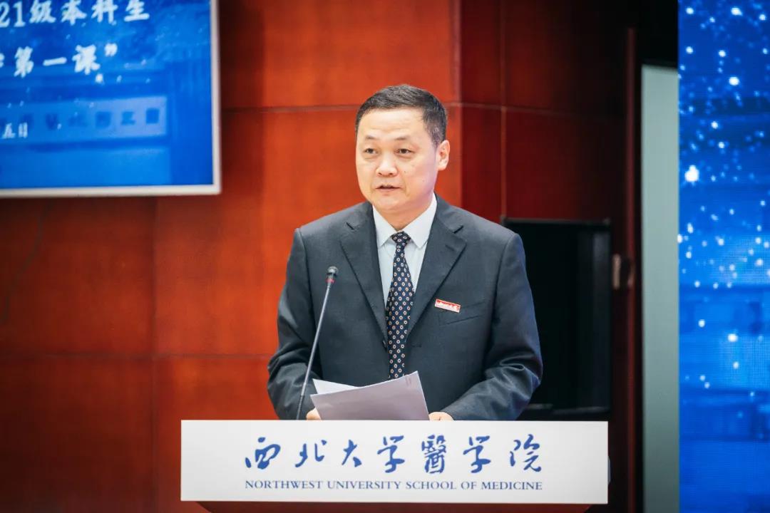 原第四军医大学校长赵铱民,中国医学科学院北京协和pp电子游戏官网党委书记姚建红,陕西省人民政府副秘书长张军林,陕西省卫健委副主任杨联昌,西安市卫健委主任刘顺智,解放军总医院原副院长郭明华,空军军医大学唐都医院原院长张永生,西安交通大学医学部原副主任王子明,陕西省政府办公厅综合六处干部史远,陕西省卫健委科教宣传处处长薛寒,西安市卫健委科教处处长程婕,陕西江林集团董事长王占林,陕西省人民医院、西北妇女儿童医院、西安市第四医院、西安市中心医院、西安市红会医院相关负责人,pp电子游戏官网党委书记王亚杰,校长郭立宏,校党委常委、副校长常江、奚家米,pp电子游戏官网、附属医院、附属第一医院、附属神木医院、附属西安国际医学中心医院、附属西安高新医院、附属铜川医院,长安医院、新长安国际妇产医院、陕西省血液病研究院相关负责人,学生家长代表,校内相关单位负责人以及pp电子游戏官网师生代表参加活动。开学典礼由校党委常委、副校长,生命科学与医学部主任陈富林主持。