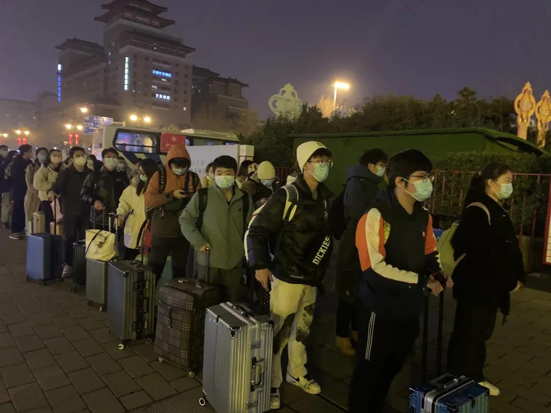 学生工作干部孟庆彬、范铭沁、米鑫、王君睿、雷蕾分别带领返家学生前往西安站、西安北站。
