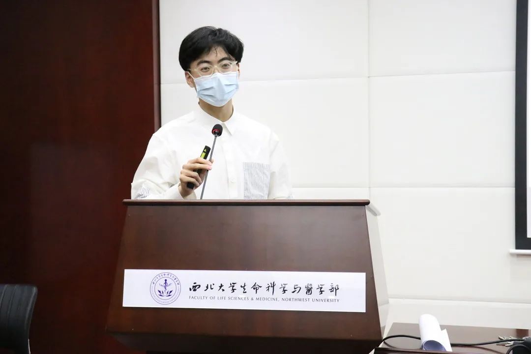最后,2019级杜璞同学以2020年带队参加第七届基础医学创新大赛的经历,分享了如何选题、如何准备竞赛、如汇报答辩的宝贵经验,他提醒同学们答辩要注意内容的条理性,课件的逻辑性,结果的可靠性与答辩的严谨性。