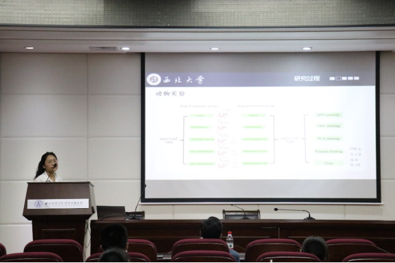最后,李志超教授介绍了他的团队对于急性呼吸窘迫综合征的研究进展,邀请团队学生负责人张美玲作了关于《丹参素异丙酯对急性肺损伤小鼠的防治作用及机制研究》相关报告,从研究的全过程为学生介绍科研工作的前期准备、实验设计、数据处理、结果分析等各项工作的进展,激励医学本科生积极参与科研工作。