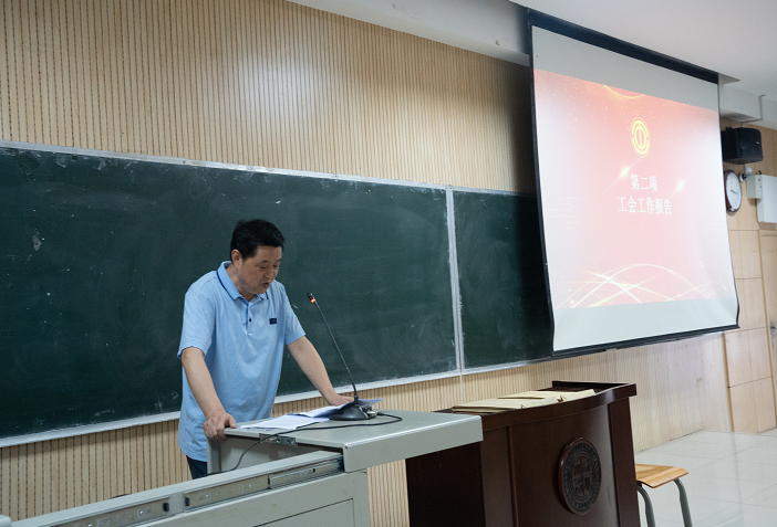 学部分会主席尉亚辉同志代表本届委员会作工会工作报告。尉亚辉主席从坚持党建引领、建好“职工小家”、推进“一院一品”、丰富文化生活、心系每位会员五个方面进行了汇报。分会女工会员赵晔同志做了工会会费使用情况的报告。