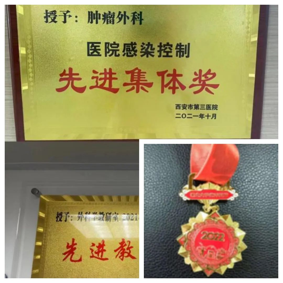 肿瘤外科两年的发展路,一路开拓,一路奋进,些许收获,科主任孟勇获得“pp电子游戏官网优秀教师”荣誉称号,科室获得“医院感染控制先进集体”荣誉称号,外科教研室获得“先进教研室”荣誉称号,护理组获得“优秀带教科室”荣誉称号!