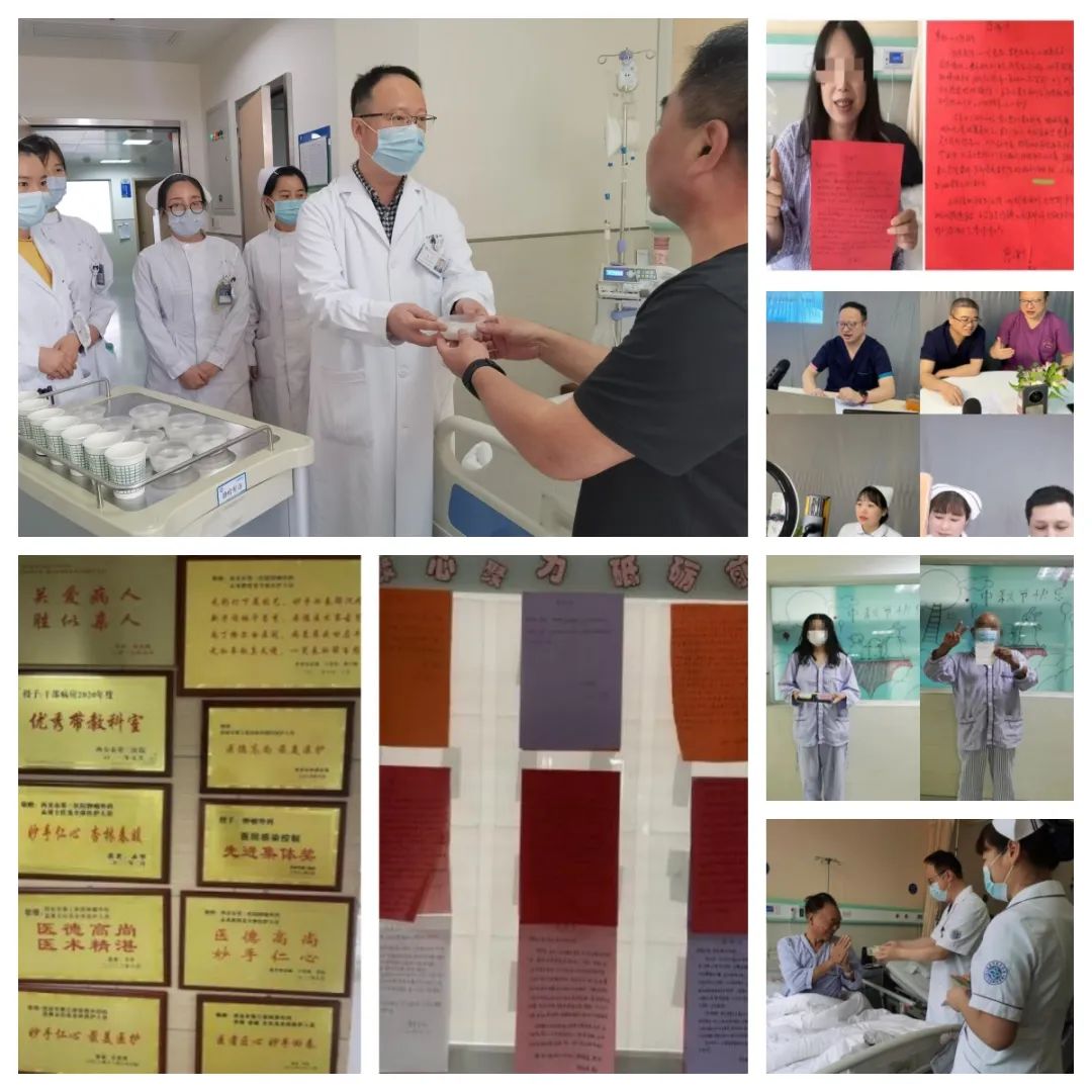 医护携手用心温暖病人。科室积极开展多模式健康宣教活动,制定健康教育手册;每周四开展健康“云”宣教活动,医患“面对面”沟通,让更多的病人了解疾病知识,养成健康生活方式。2年来收到感谢信90余封,锦旗50余面,牌匾20余面。