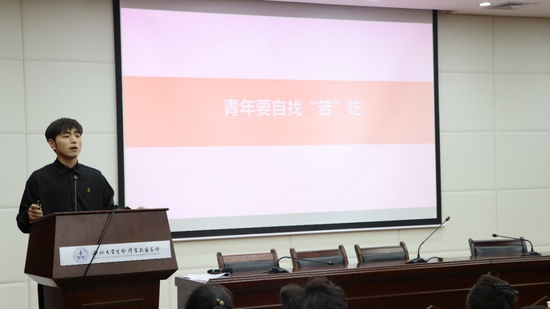 马克思主义学院2022级硕士研究生田丰以“青年要自找苦吃”为主题,为全体学员揭示了追求卓越的道路上“吃苦”所蕴含的深刻内涵。他通过讲述邓稼先、杨善洲的感人故事,激励着青年们要在面对困难时保持积极、勇往直前。最后,田丰巧妙地通过简单的例子解释了“吃苦”的真正含义,将其比喻为种子在黑暗地底努力扎根、汲取养分的过程。他强调,所谓的苦实际上是为了日后的绚丽绽放,正如种子最终在努力生长后,迎来美丽的花朵和丰硕的果实。